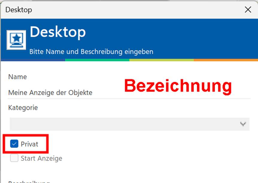 Die Einstellung „Privat“ belassen und dem Desktop eine Bezeichnung geben.