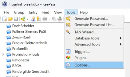 - Öffne KeyPass → Menü “Tools” → Optionen