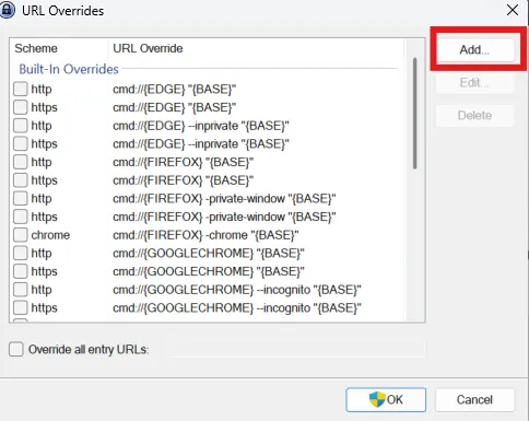 3. Hinzufügen eines URL Overrides per Klick auf “Add”
