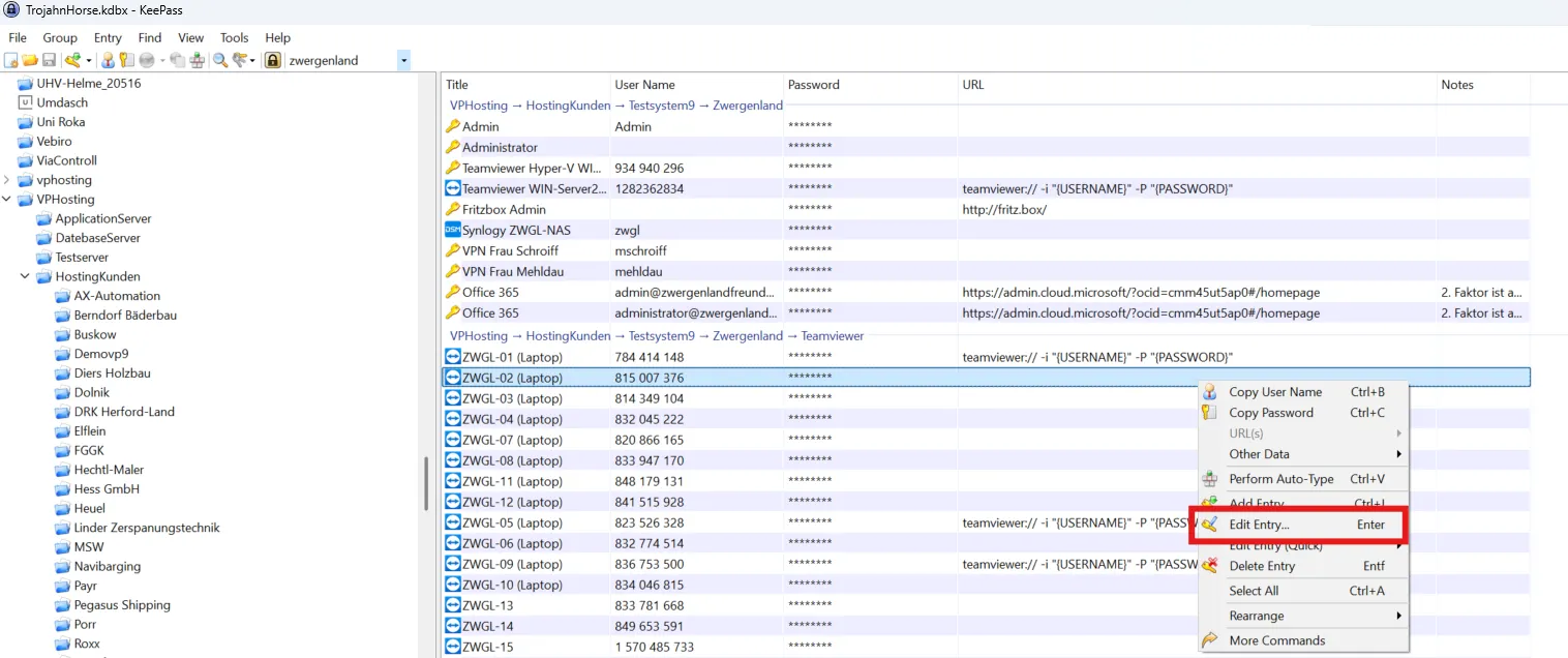 7. Der Eintrag im KeyPass bearbeiten, welcher die Override URL erhalten soll → Rechtsklick auf den Eintrag